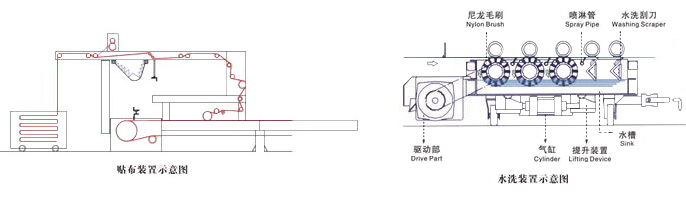 導(dǎo)帶清洗直接關(guān)系到印花質(zhì)量,本機水洗裝置由3根尼龍毛刷,3根噴淋管及2根刮刀等組成,整個裝置為氣動結(jié)構(gòu),使導(dǎo)帶能達(dá)到最好的清洗效果。